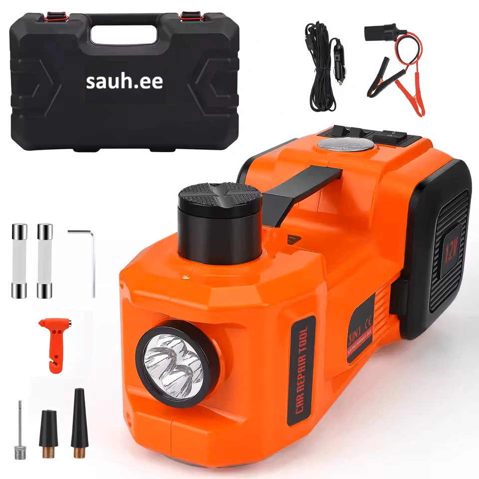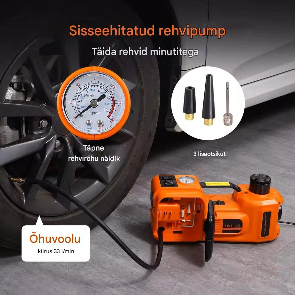 | Kaasas | Elektriline 5T Hüdrauliline Autotungrauakomplekt: toitejuhe, akuklambrid, pikendusvarras, hädavasar, kuuskantvõti, varukaitsmed (2 tk), õhuventiilid (3 tk), hoiukohver |