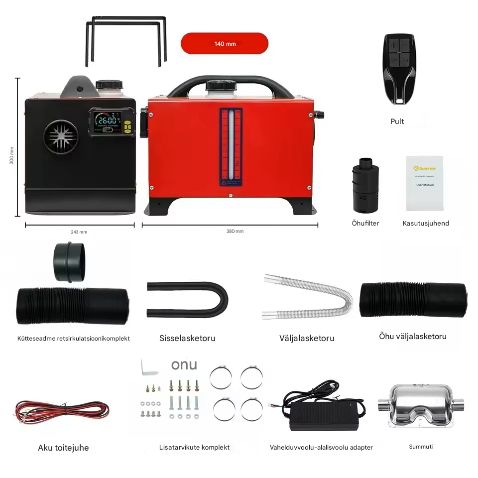 8kW diiselpuhur on kompaktne ja ökonoomne lisakütteseade sõidukitele ja ruumidele. Sobib kasutamiseks aastaringselt. Vaikne töö, madal kütusekulu ja mugav juhtimine puld, telefoni või LCD-ekraaniga.