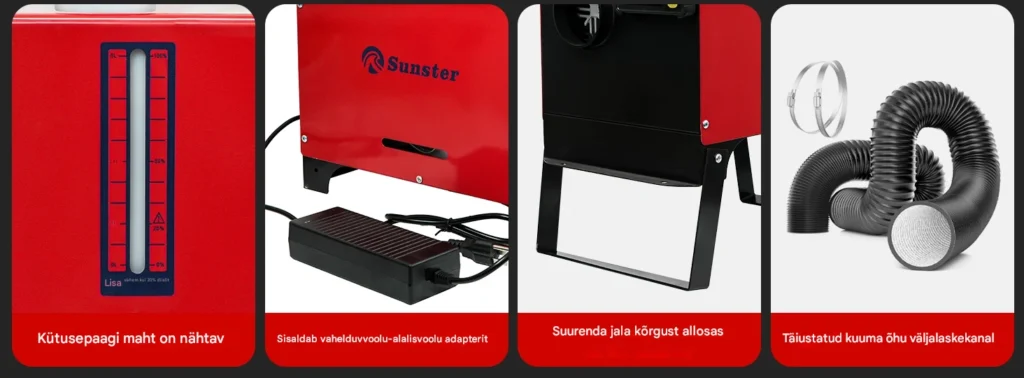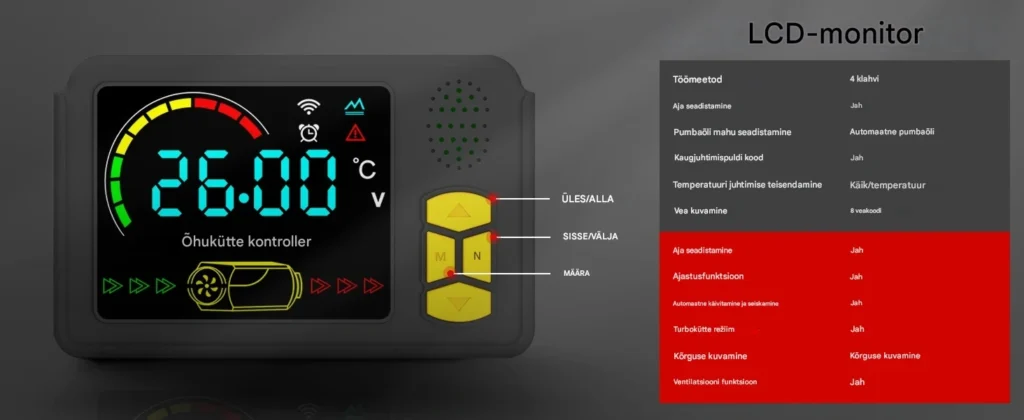 🔴Märkus: Seade kütab ainult diisliga. Elekter on vajalik seadme käivitamiseks, ventilaatori, pumba ja juhtploki tööks.