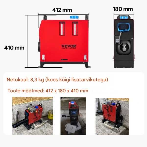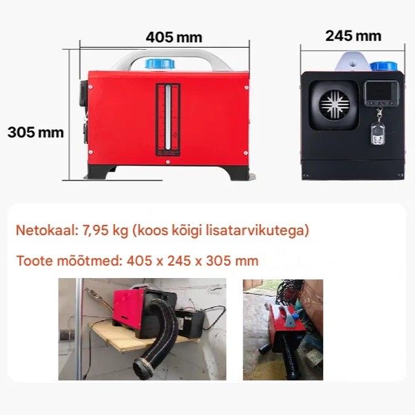 8kW diiselpuhur on kompaktne ja ökonoomne lisakütteseade sõidukitele ja ruumidele. Sobib kasutamiseks aastaringselt. Vaikne töö, madal kütusekulu ja mugav juhtimine puldi ning LCD-ekraaniga tagavad lihtsa ja mugava kasutuse ka külmades tingimustes.