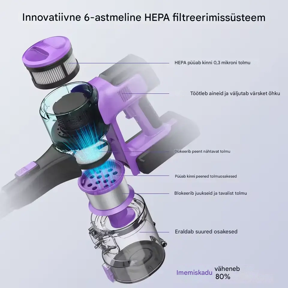 | Filtrisüsteem | 6-astmeline (tsüklon + HEPA) |