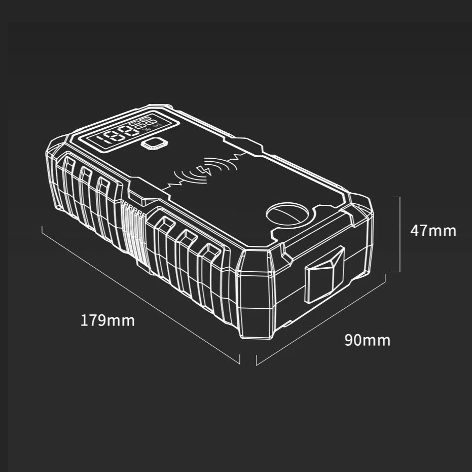 Jump starter ehk Käivitusabi bensiinimootoritele kuni 8.0L ja diiselmootoritele kuni 7.0L. Sobib sõiduautodele, maasturitele, kaubikutele ja väiketehnikale 12V süsteemiga.