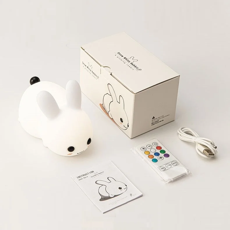 Öölamp Jänku on vahva kaaslane magamistuppa. Sisse ja välja lülitamiseks tuleb tema saba lihtsalt puudutada ja jälgige, kuidas see loob meeldiva ja rahustava valguse, mis täidab teie ruumi soojuse ja rõõmuga.