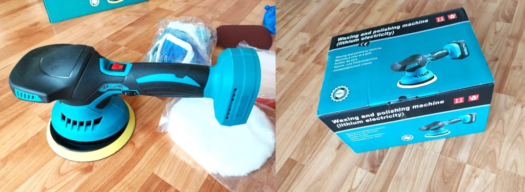 1 x Aku poleerimismasin, 1 x Tasane poleerimispadi, 1 x Laineline poleerimispadi, 1 x Villane poleerimispadi, 1 x Liivapaber, 5 x Padjakatted (mikrokiust * 2, kootud kangast * 1, villa * 1), 1 x Põll, 1 x Poleerimiskindad