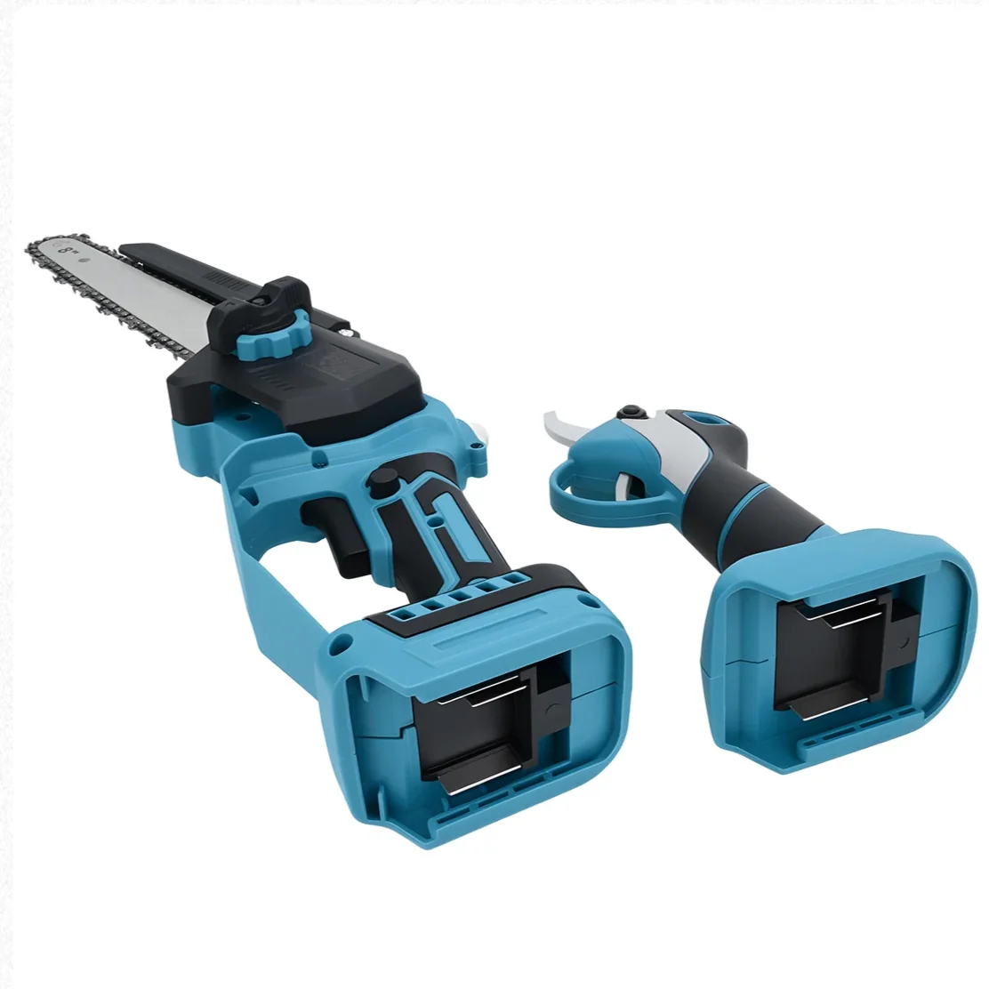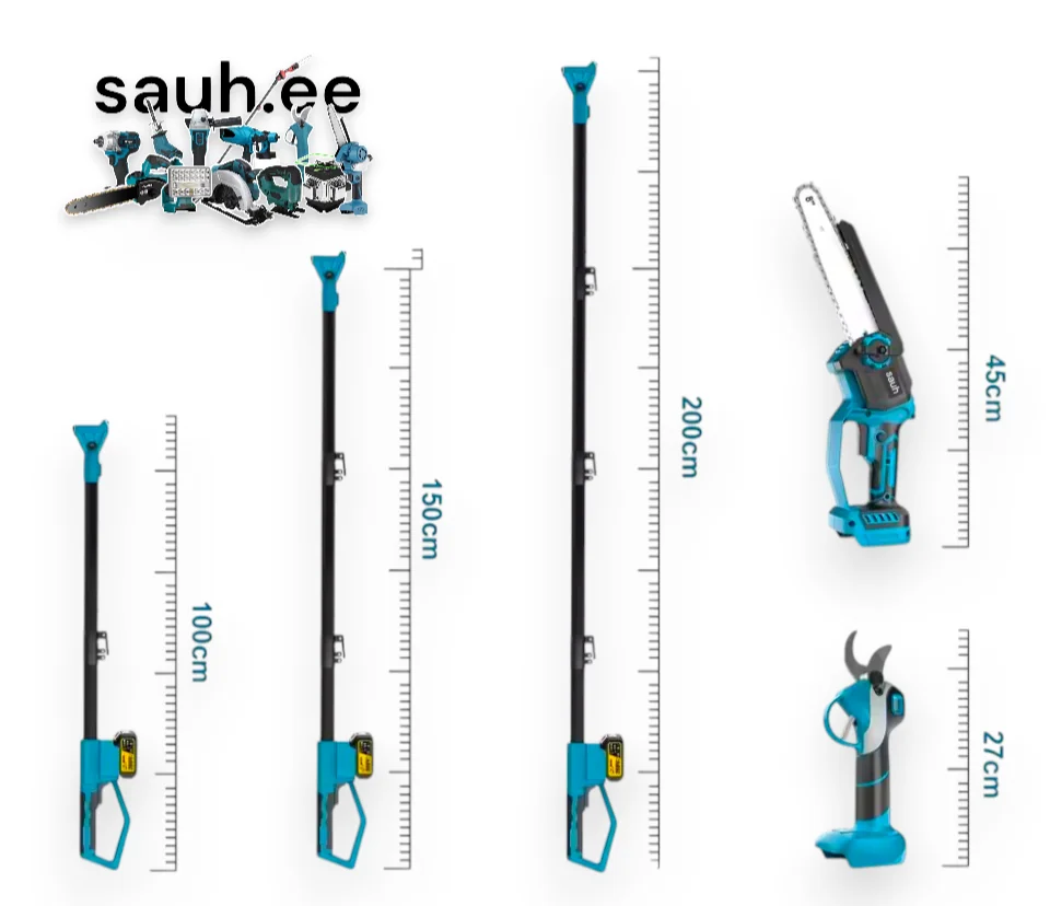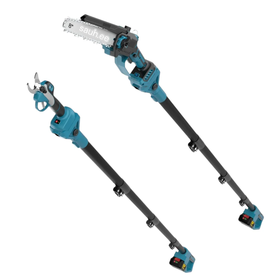Harjavaba mootoriga aku oksakäärid ja akukettsaag 20 cm õlipaagiga ning 2,4 m teleskoopvarras. Sobivad kasutada ka Makita 18V akudega.