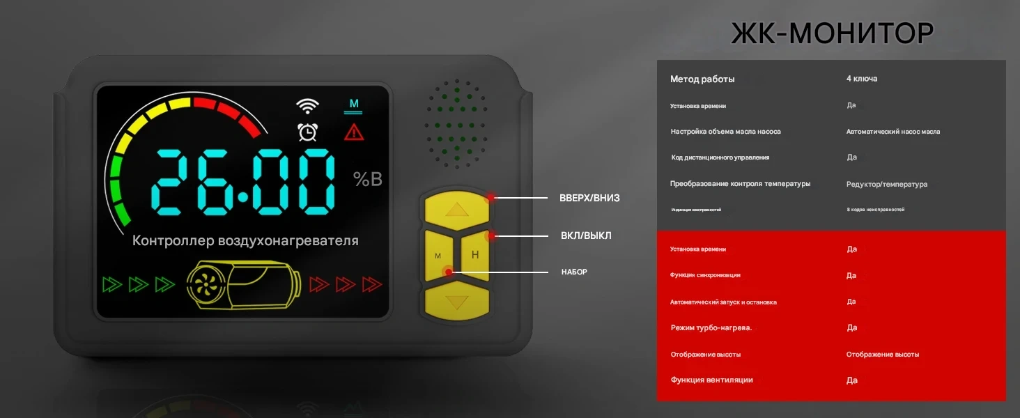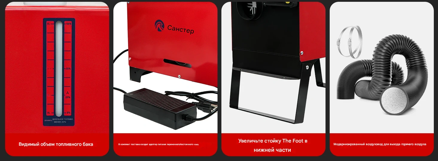 🔴Примечание: Устройство работает только на дизельном топливе. Электричество необходимо для запуска устройства, работы вентилятора, насоса и блока управления.