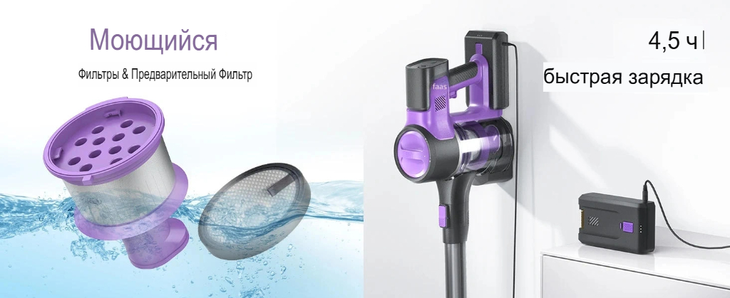 Мощный пылесос с силой всасывания 45 кПа, подходящий для ежедневной уборки. Удаляет пыль, волосы и крошку со всех поверхностей. Съемный аккумулятор обеспечивает до 50 минут работы. Насадка для пола с LED-подсветкой помогает очистить даже самые темные углы. Удобен в использовании как ручной пылесос, так и в полноразмерном варианте.